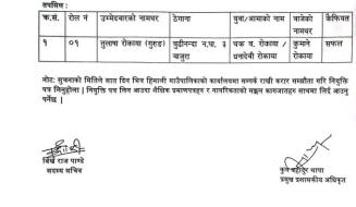 - बसाई सराई गरी जानेको हकमा परिवारको विवरण सहित सम्बन्धित वडा कार्यालय बाट जारी बसाई सराईको कागजात