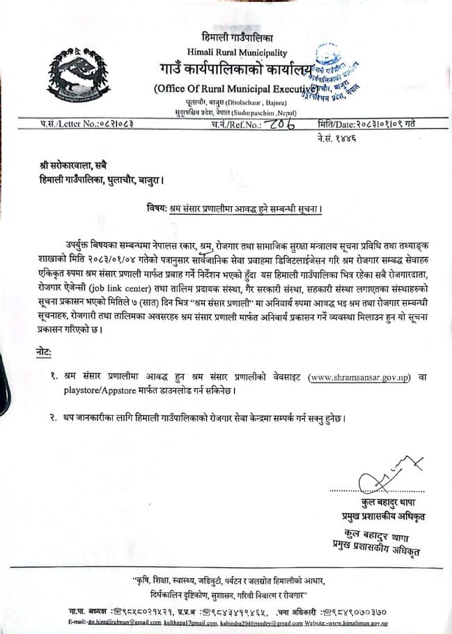श्रम संसार प्रणालीमा आवद्ध हुने सम्बन्धी सूचना ।